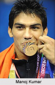 Manoj Kumar is an Indian boxer who won a gold medal in the light welterweight division at the 2010 Commonwealth Games. He hails from the village of Rajound in the Kaithal district of Haryana.Kumar is currently supported by theOlympic Gold Quest.