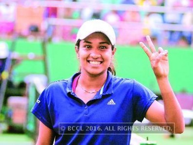 Prarthana Thombare 1st position in south asian games. women’s doubles event in Guwahati.