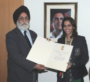 Description : Saina Nehwal was awarded with gold in world junior championships in girl's singles event held at Pune in 2008