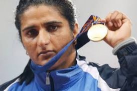 Description : Seema Punia Antil was awarded with gold in asian games discus throw event in incheon.