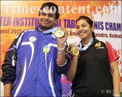 Soumyajit Ghosh won singles event at the Inter Institutional Table Tennis Championships-2013 in Dharwad, Karnataka