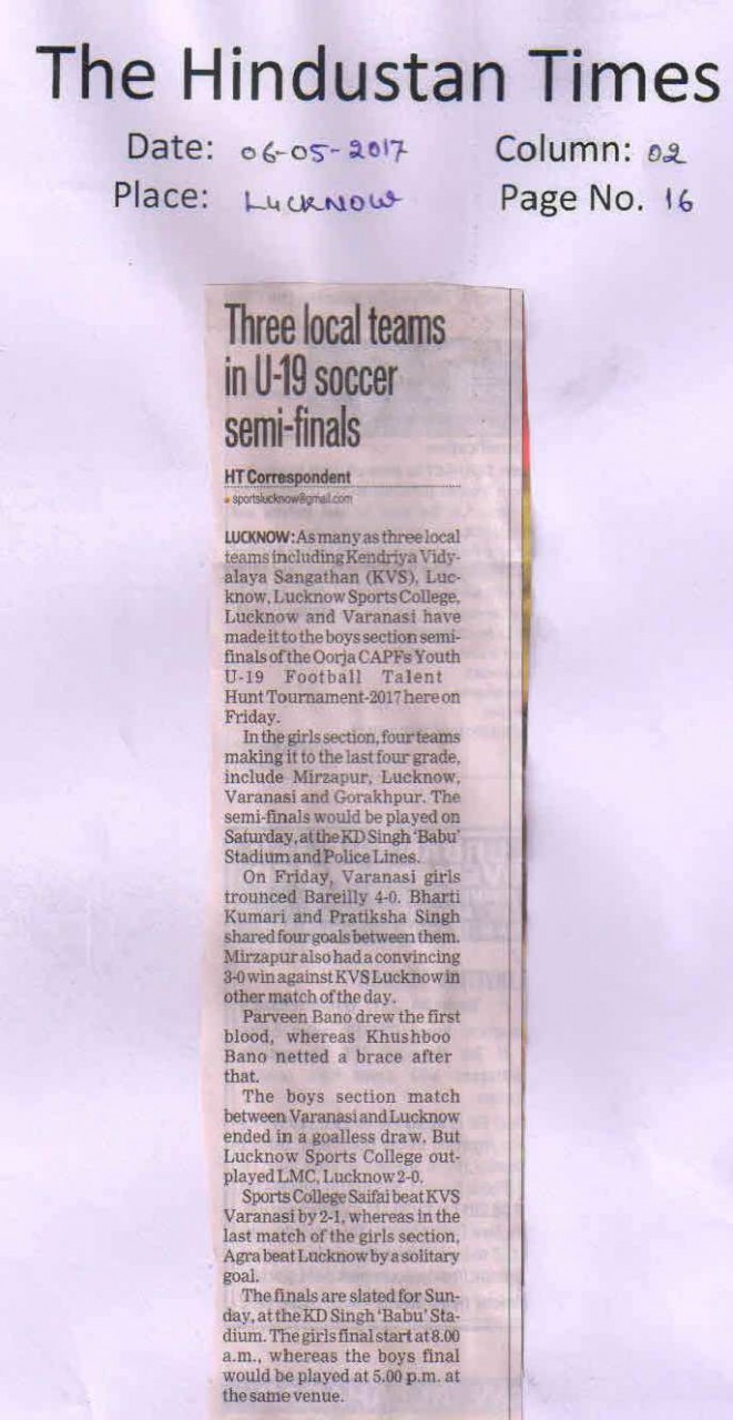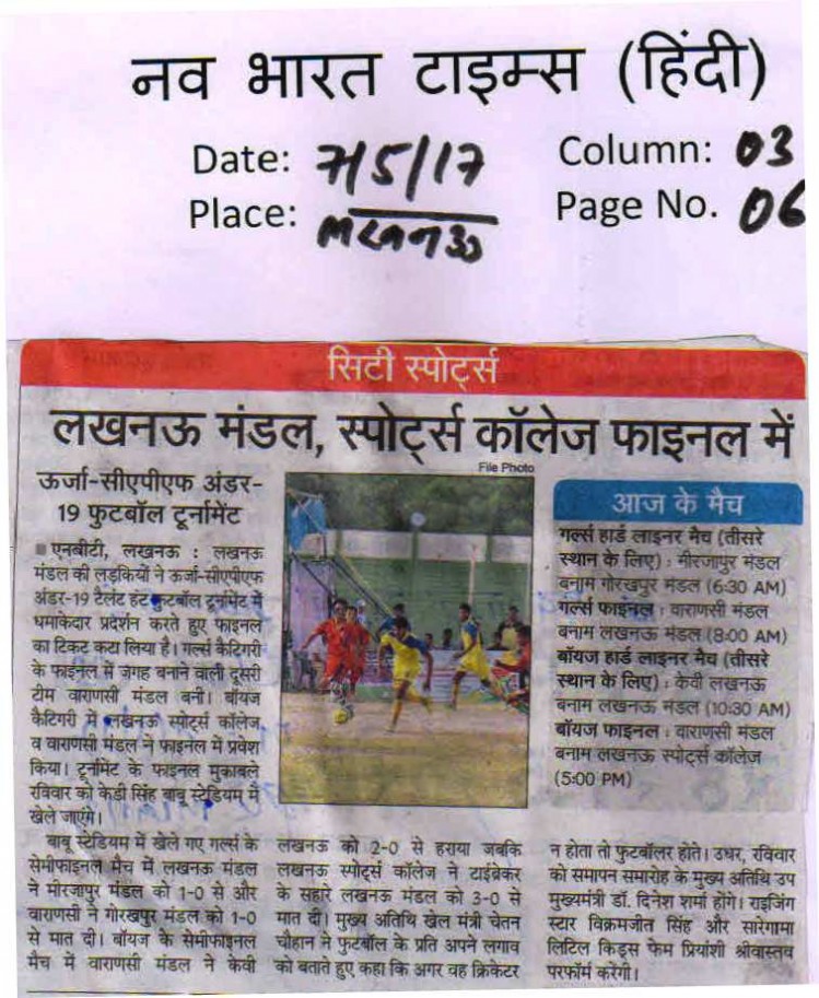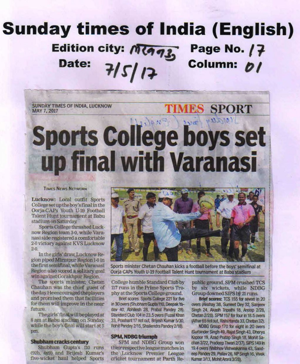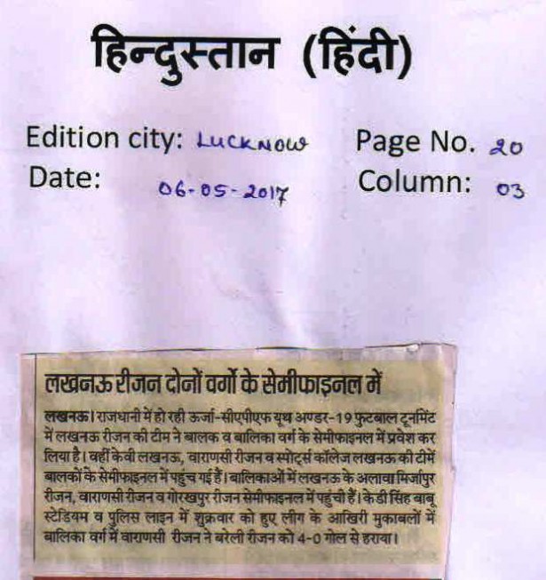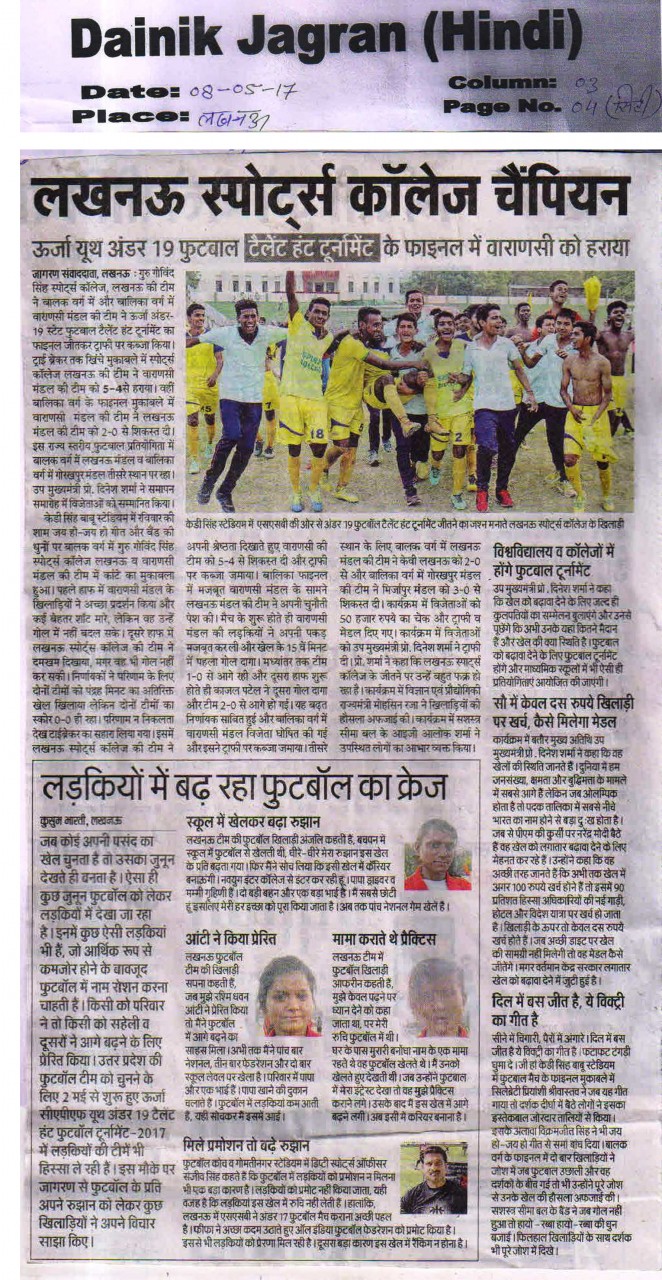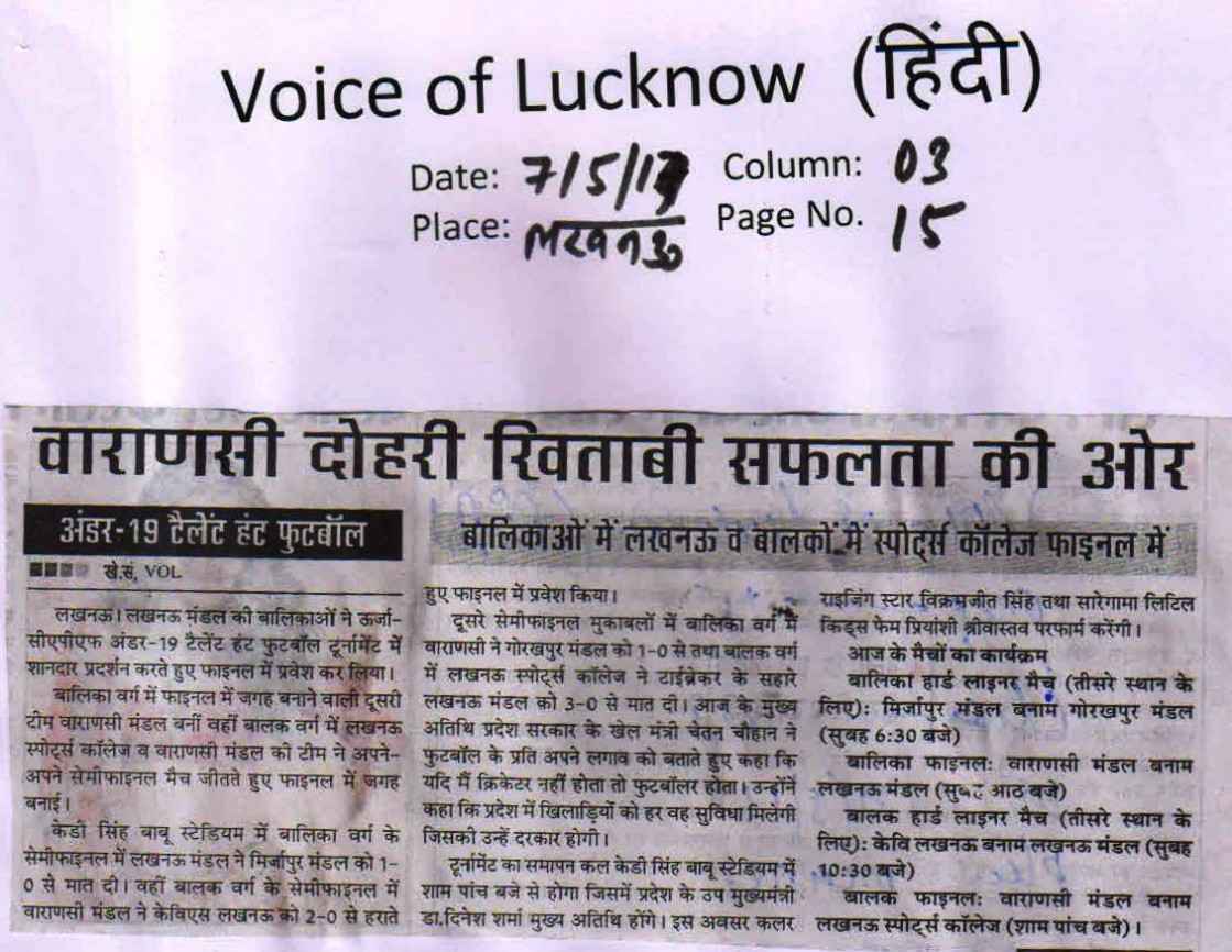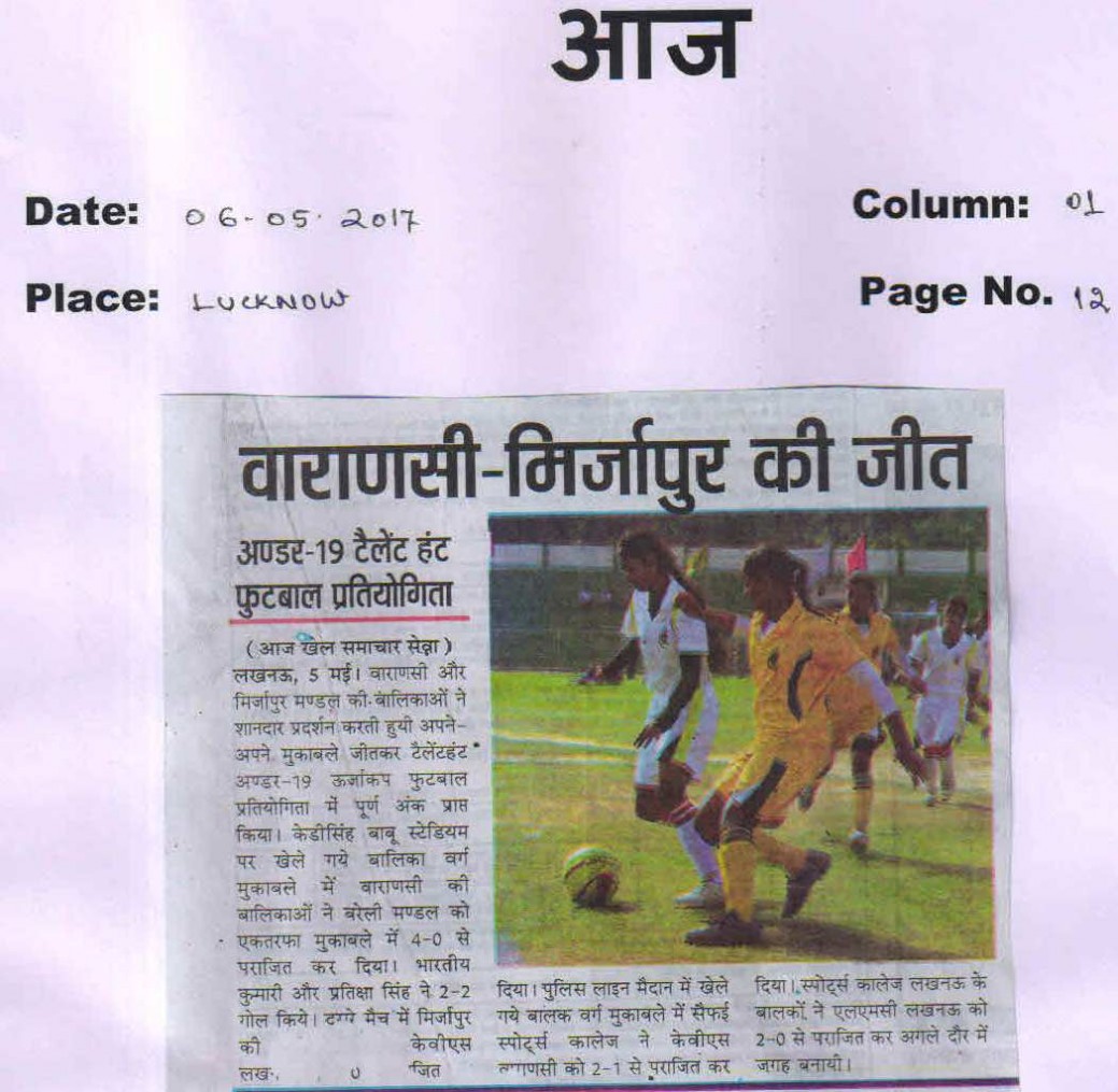 | 1 | UTTAR PRADESH U-19 BOYS | Football |