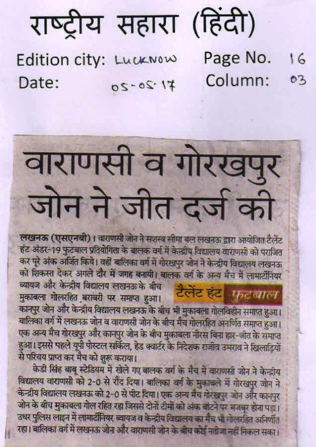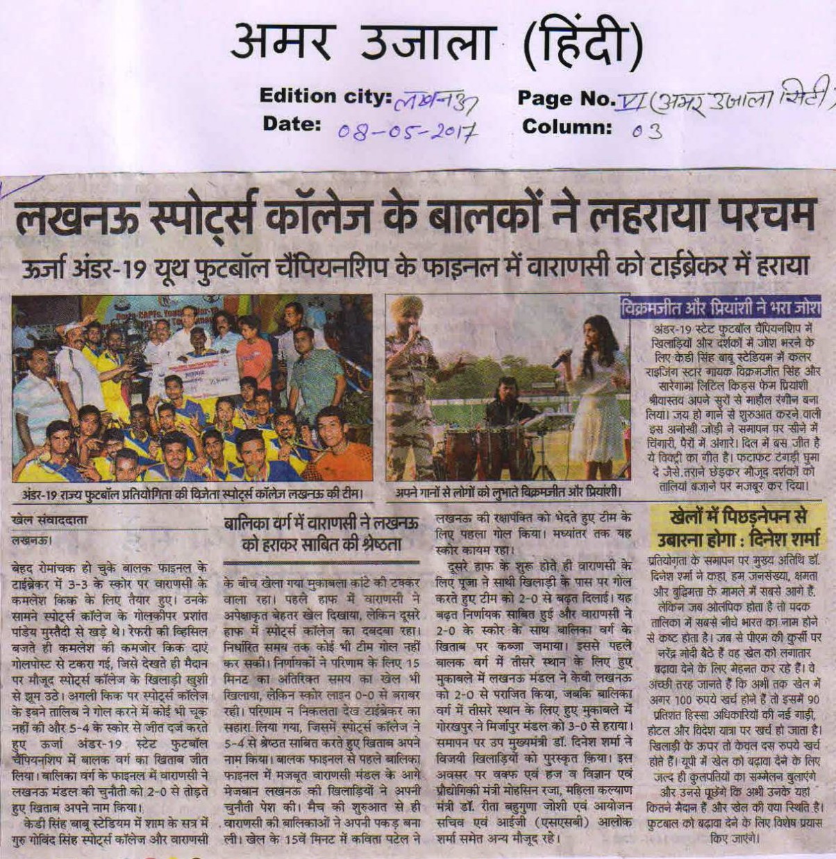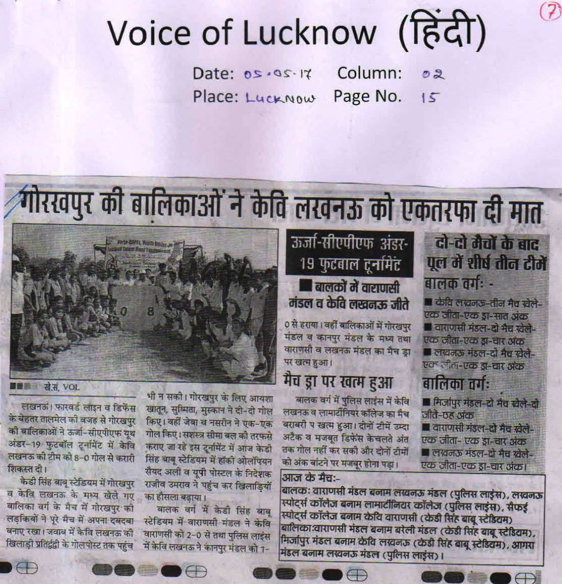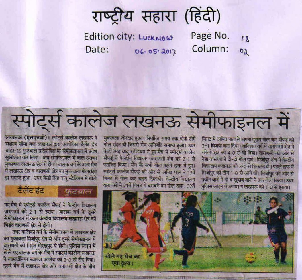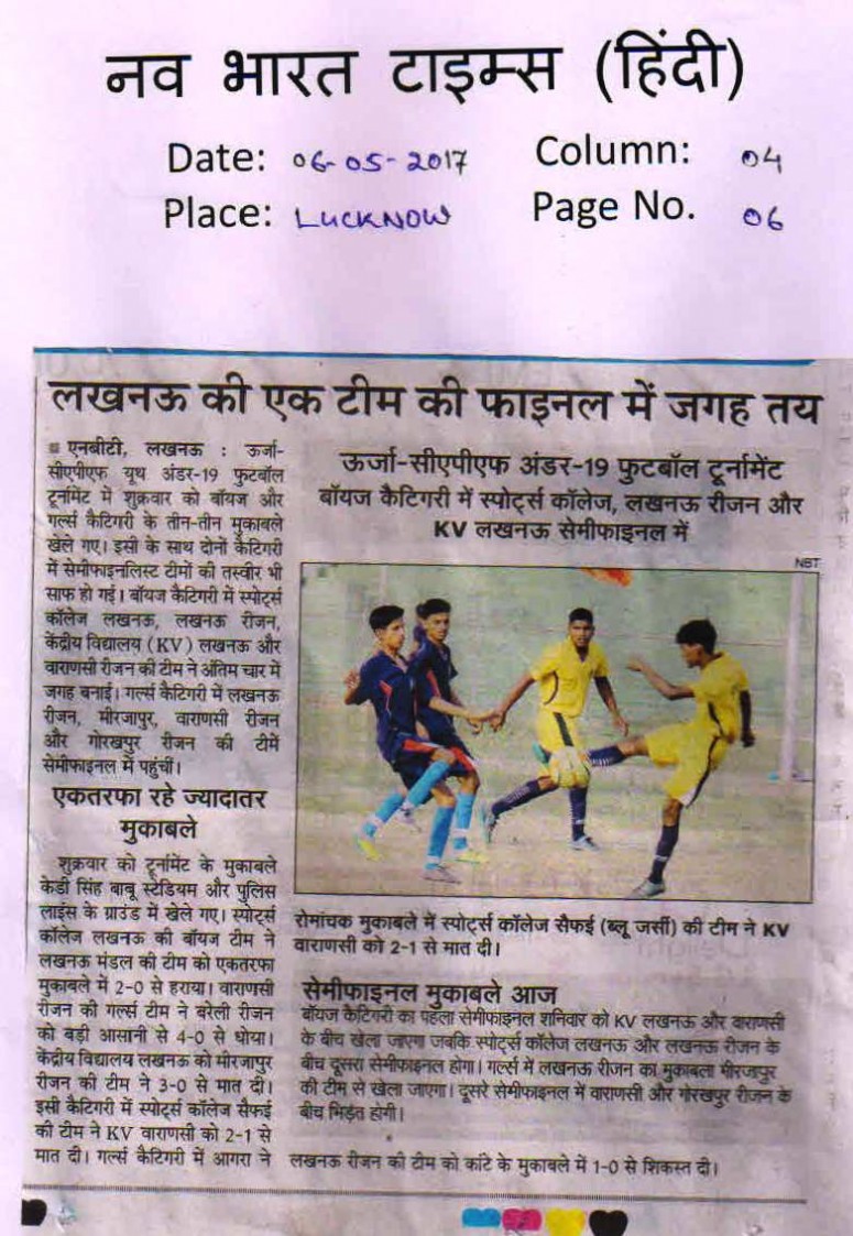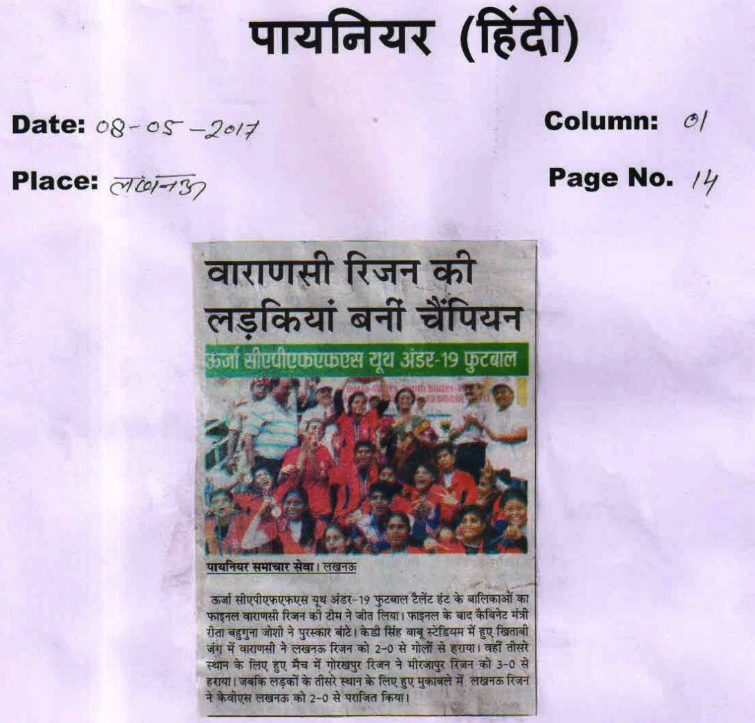 | 1 | UTTAR PRADESH U-19 BOYS | Football |