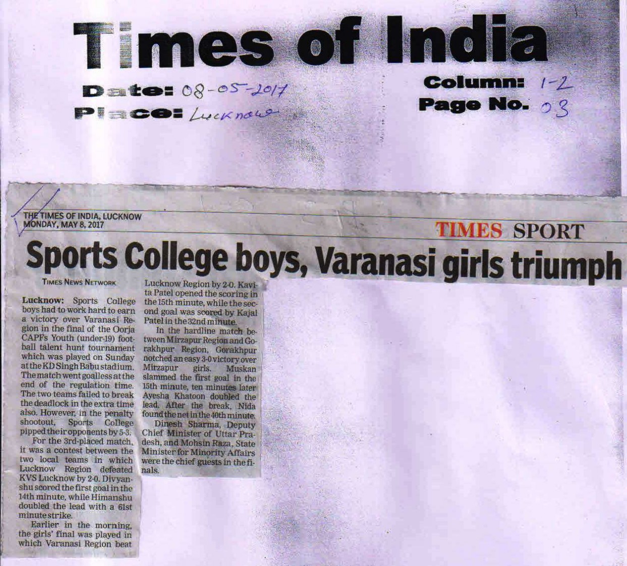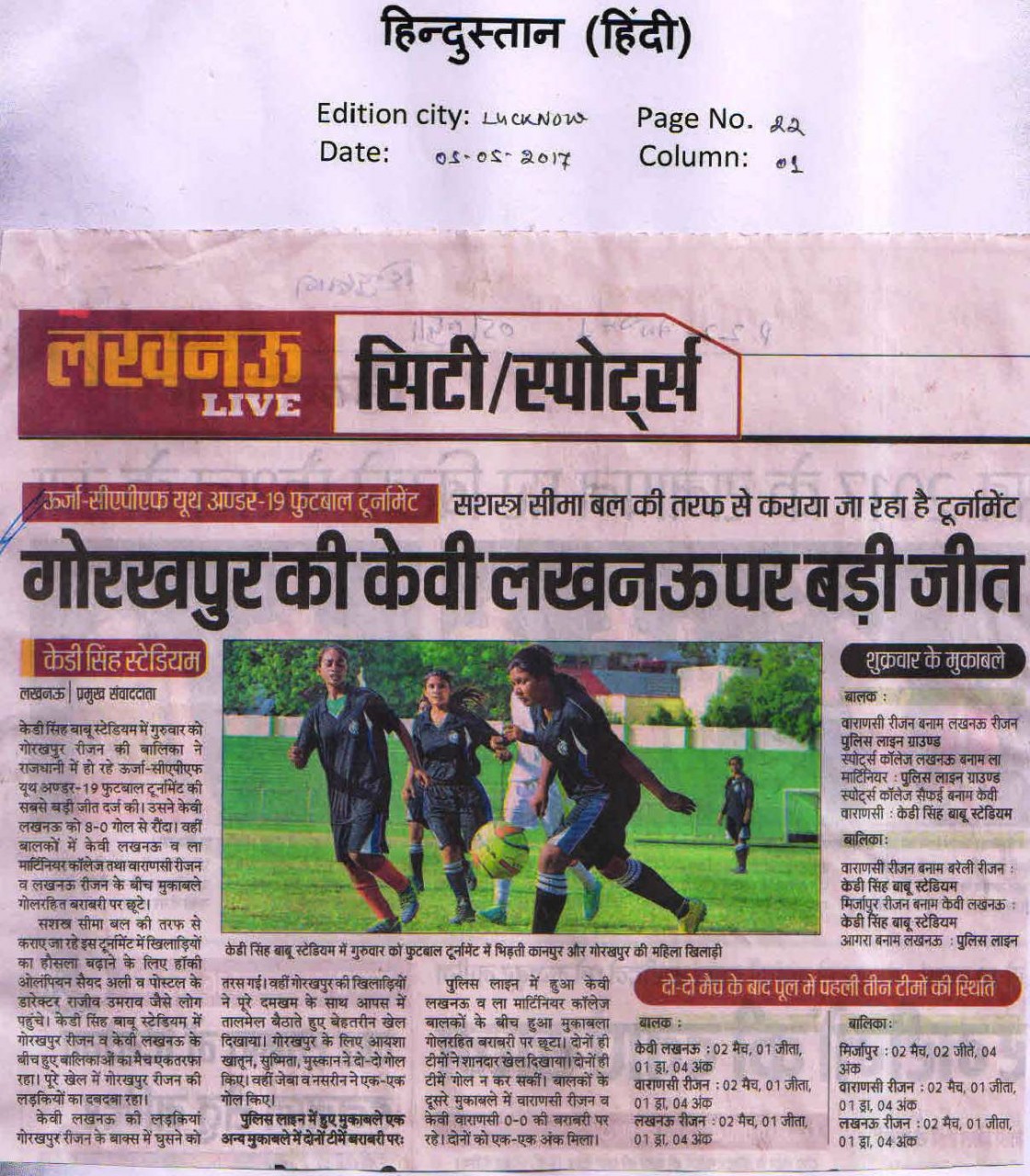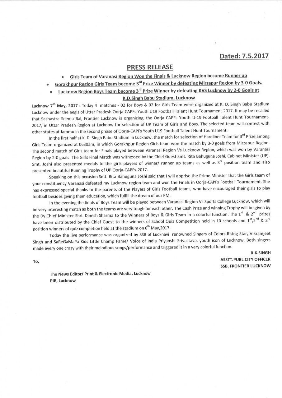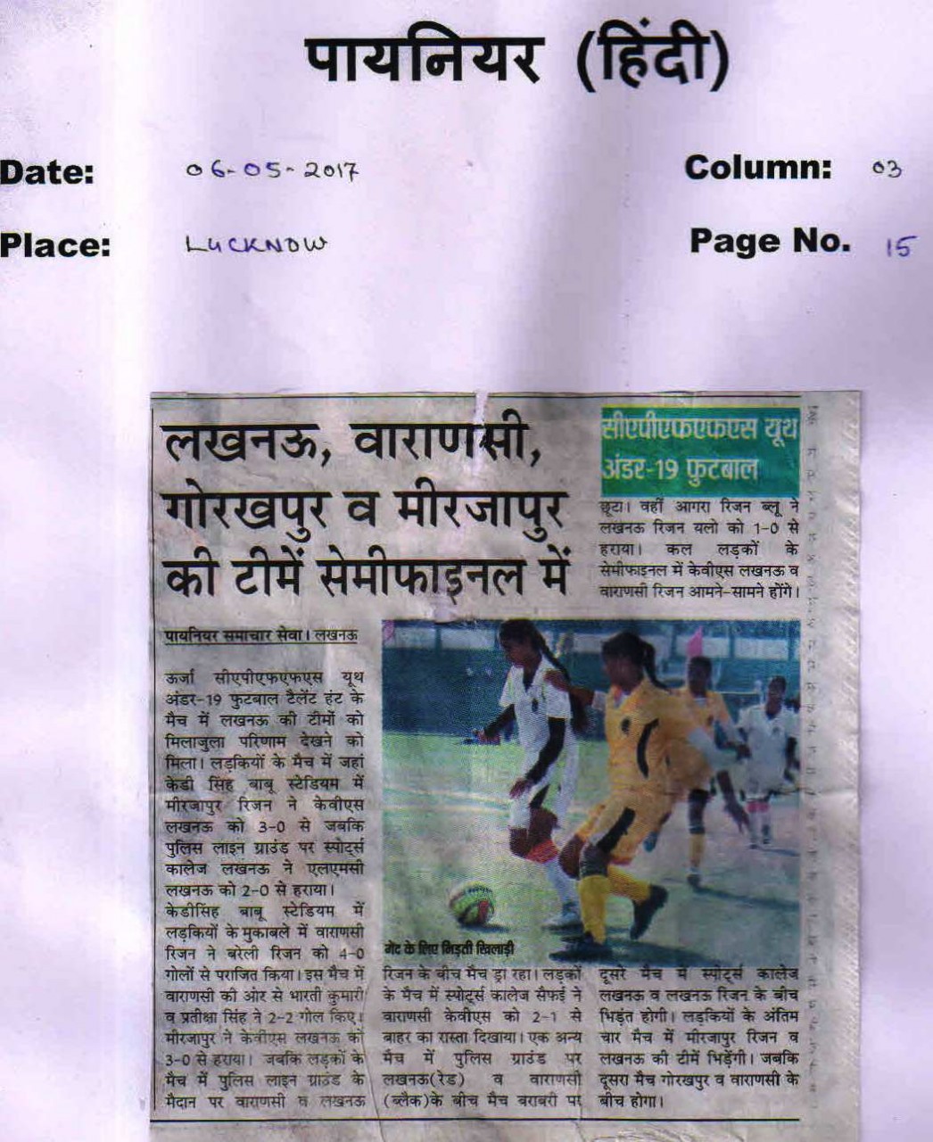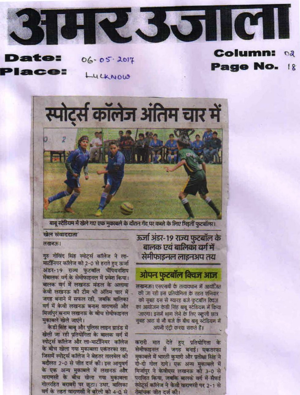 | 1 | UTTAR PRADESH U-19 BOYS | Football |