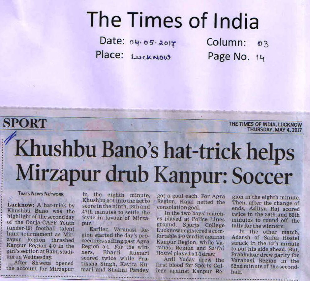 | 2 | UTTAR PRADESH U-19 Female | Football |